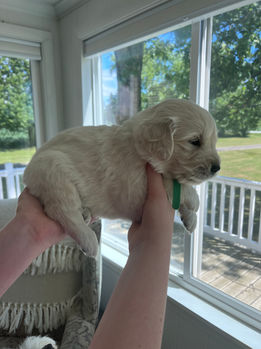Our golden pups are $1,200 and come with limited AKC registration.
